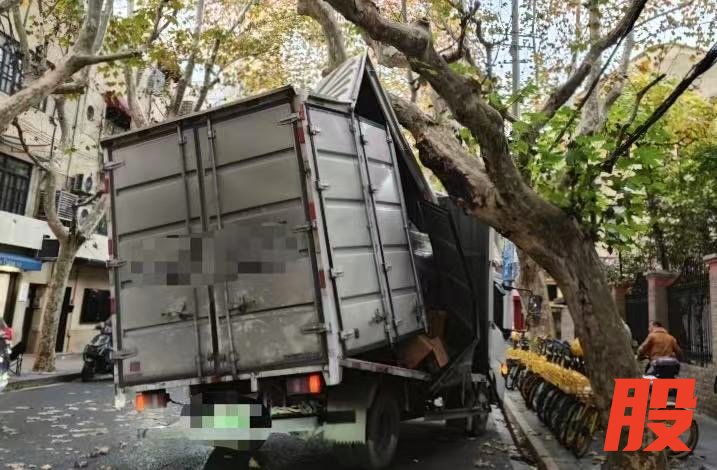 12月2日下午4时许,上海徐汇区长乐路近襄阳北路发生一幕险情:一辆厢式货车在行驶过程中,车辆撞上路边行道树粗壮的树枝,货车箱体受损,所幸事故未造成人员伤亡。