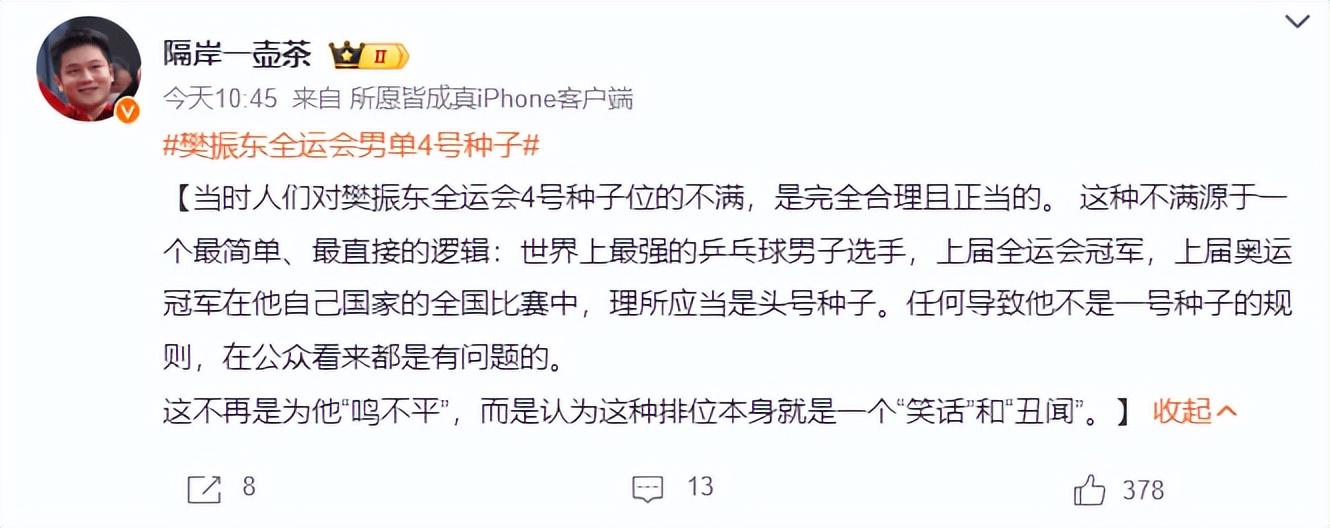 就连新华社也转发了,上一届全运会男单冠军,三届全运会五金获得者樊振东,今年全运会作为男单四号种子出战。