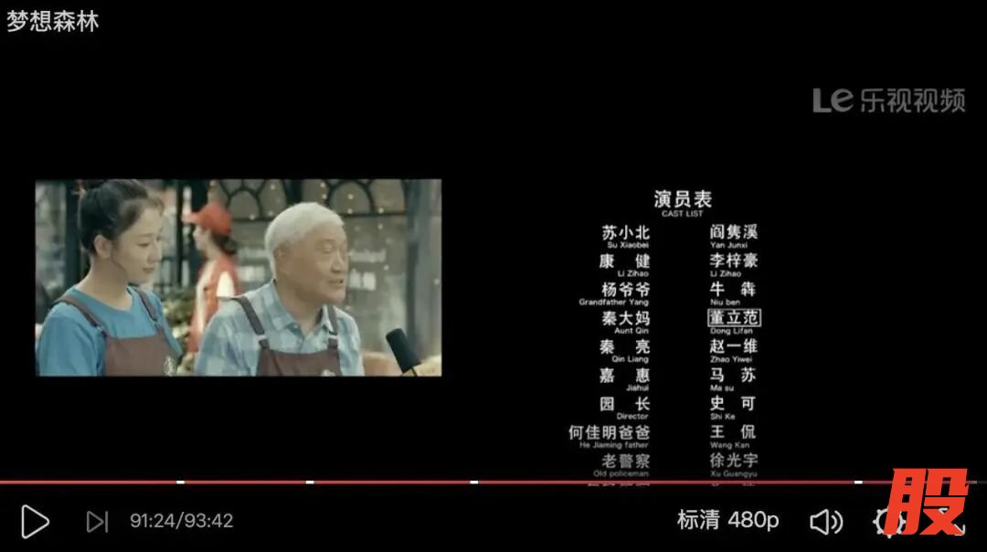 电影梦想森林演职员表中“董立范”名字已被画框
