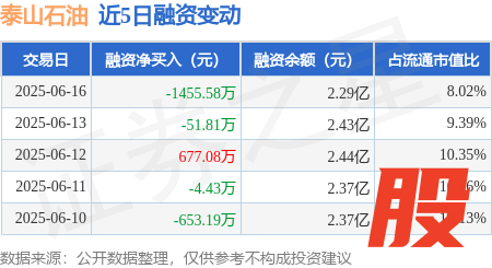 本站消息,6月16日天天盈,泰山石油(000554)融资买入3405.26万元,融资偿还4860.84万元,融资净卖出1455.58万元,融资余额2.29亿元。