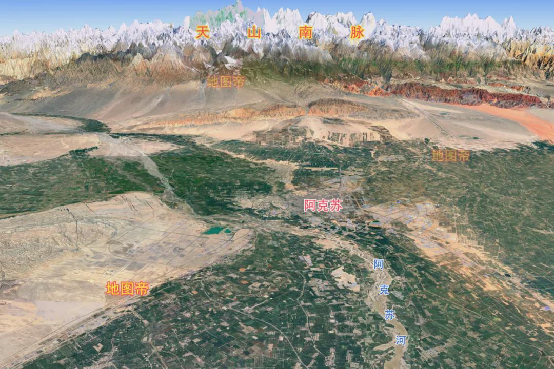 阿克苏地区地形北高南低,北部为天山山脉,中部为山前砾质扇形地,洪积和冲积平原,戈壁、绿洲相间,南部为塔克拉玛干沙漠。