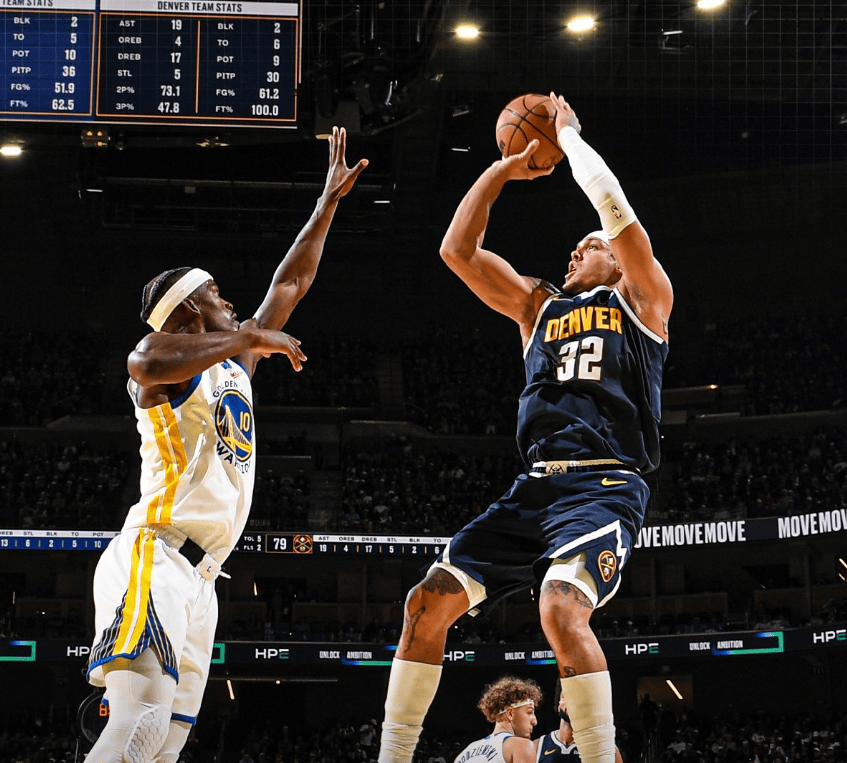 今日常规赛,掘金历经加时以131-137不敌勇士,其中阿龙-戈登全场21投17中,三分球11投10中,得到生涯新高的50分。
