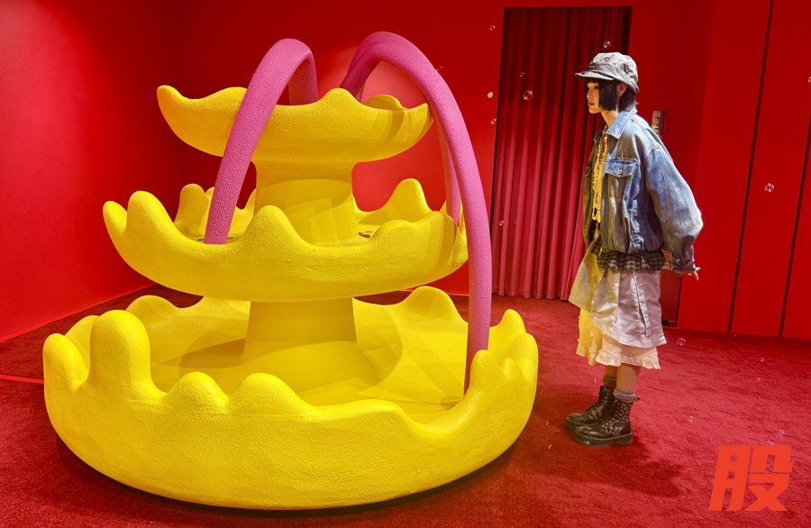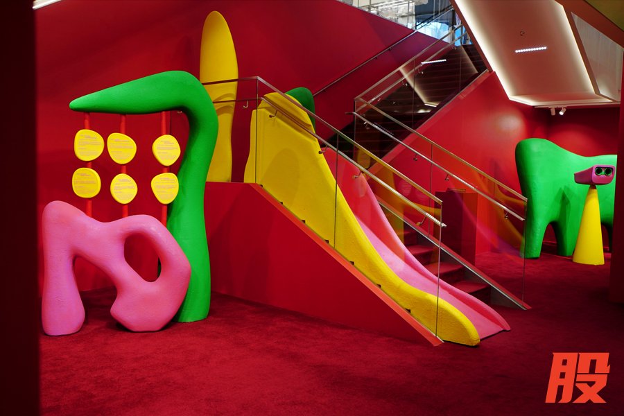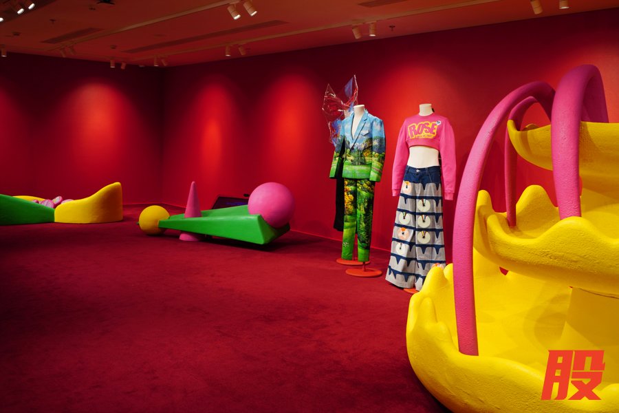 本次展览空间将 ANGUS CHIANG十年创作实践转译为可被走进的创意世界。 整个空间被划分为“滑梯”“翻转墙”“喷水池”“跷跷板”“沙堆”“风景台”等多个区域,通过设计理念的三维立体延伸,设计师将标志性的色彩碰撞、戏剧化几何形态组合与沉浸式互动设计融入空间营造,以展示品牌历年发展脉络、系列服饰、跨界合作内容等,亦通过趣味表达与互动,为参观者打造充满想象力的艺术场域,直观感受色彩的情绪张力与形态的叙事力量。